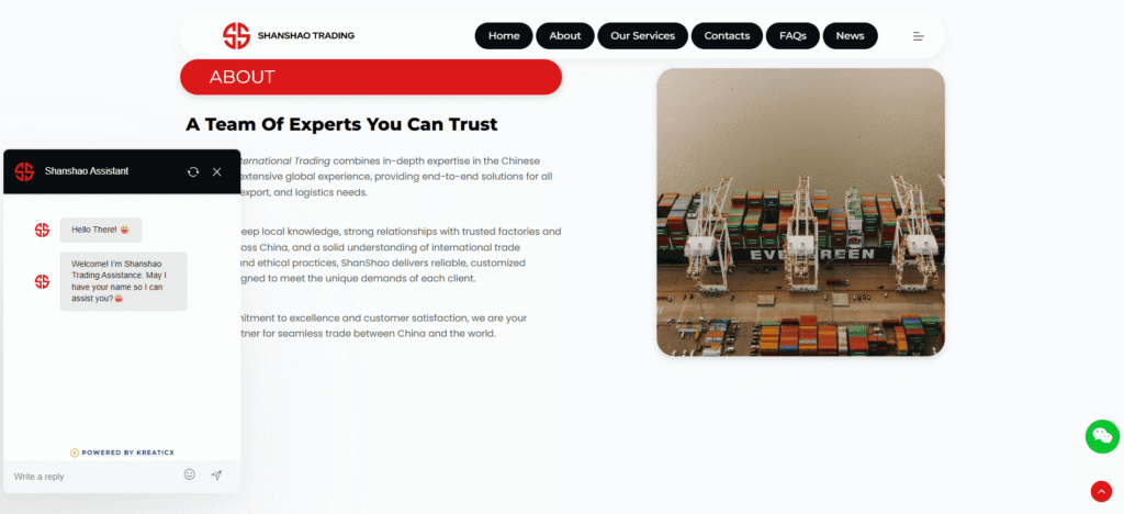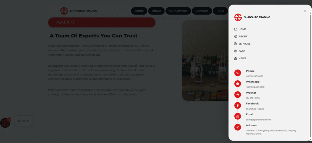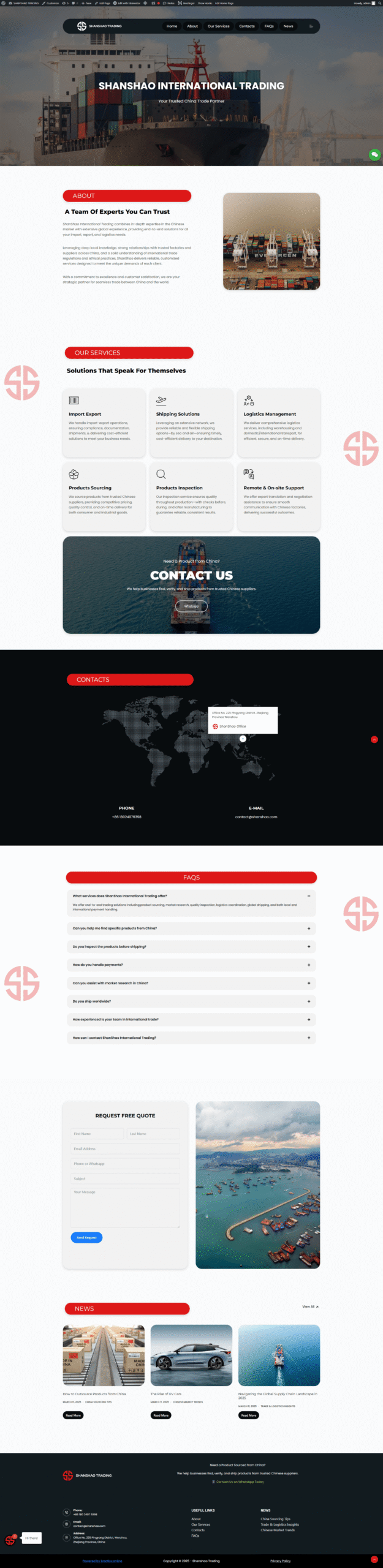 Create a professional logo and landing page for Shanshao , a B2B trading company, that reflect its global reach, reliability, and business-focused approach. The logo conveys trust and international connectivity, while the landing page clearly showcases services, builds credibility, and drives customer engagement—supporting strong growth in both local and global markets.