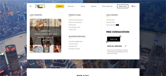 Deliver a professional, trustworthy, and user-centric digital platform for WEVISACHINA, combining intuitive navigation, strong branding, and strategic SEO to enhance client confidence and improve service acquisition.